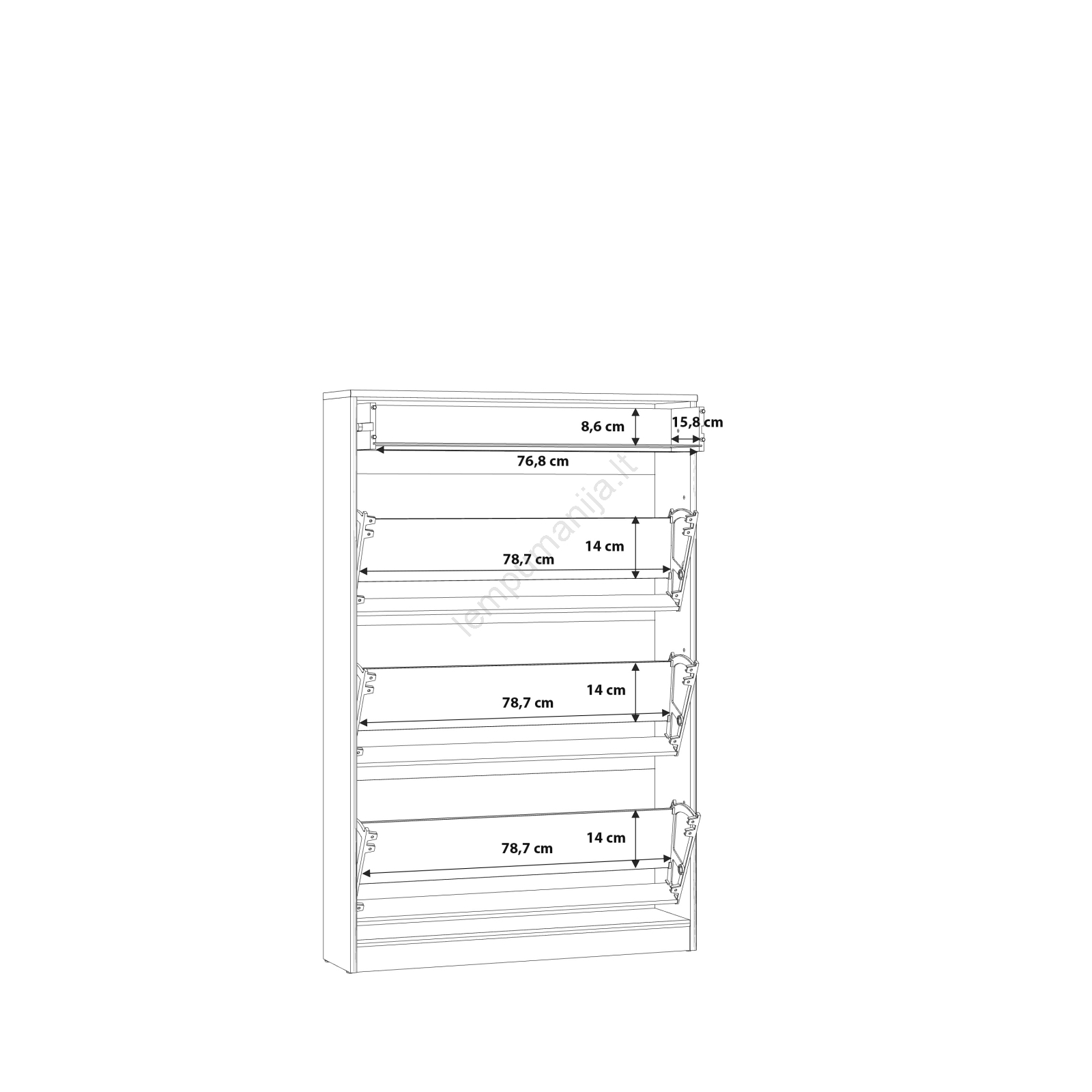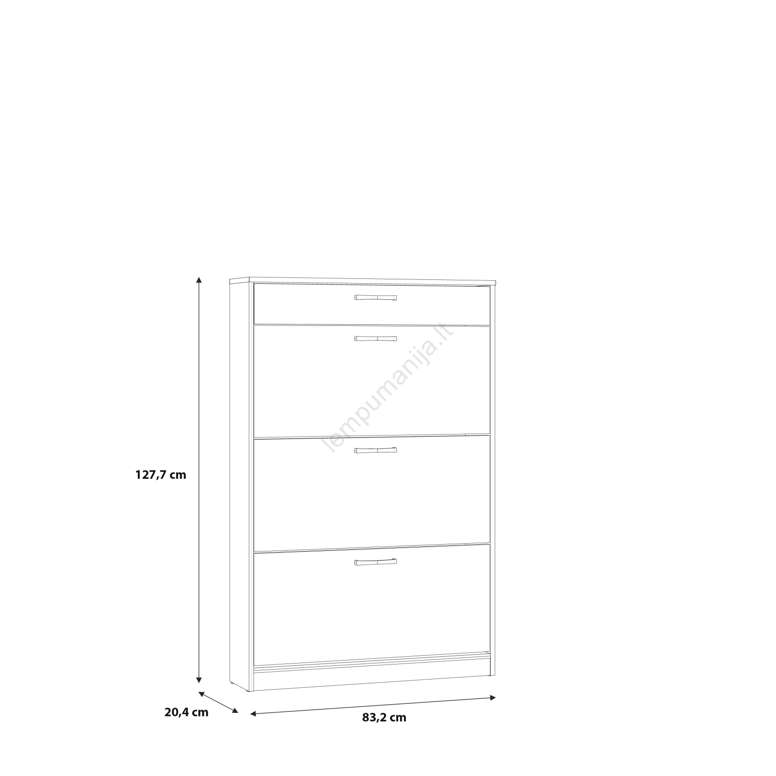 • Dėl savo lieknos formos ši keturių aukštų batų spintelė užima mažai vietos ant grindų, tačiau siūlo pakankamai vietos daiktams laikyti.