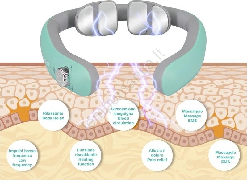 • Beper – elektrinis masažuoklis skirtas kaklo sričiai, naudojantis žemo dažnio EMS impulsus raumenų stimuliacijai ir kraujotakos gerinimui.