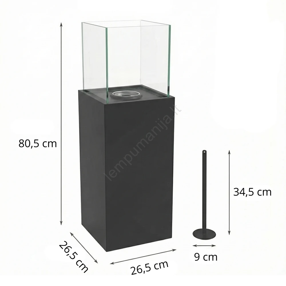 BIO židinys ALICANTE 26,5x80,5 cm 2kW juodas + apsauginis dangtis | Lempumanija