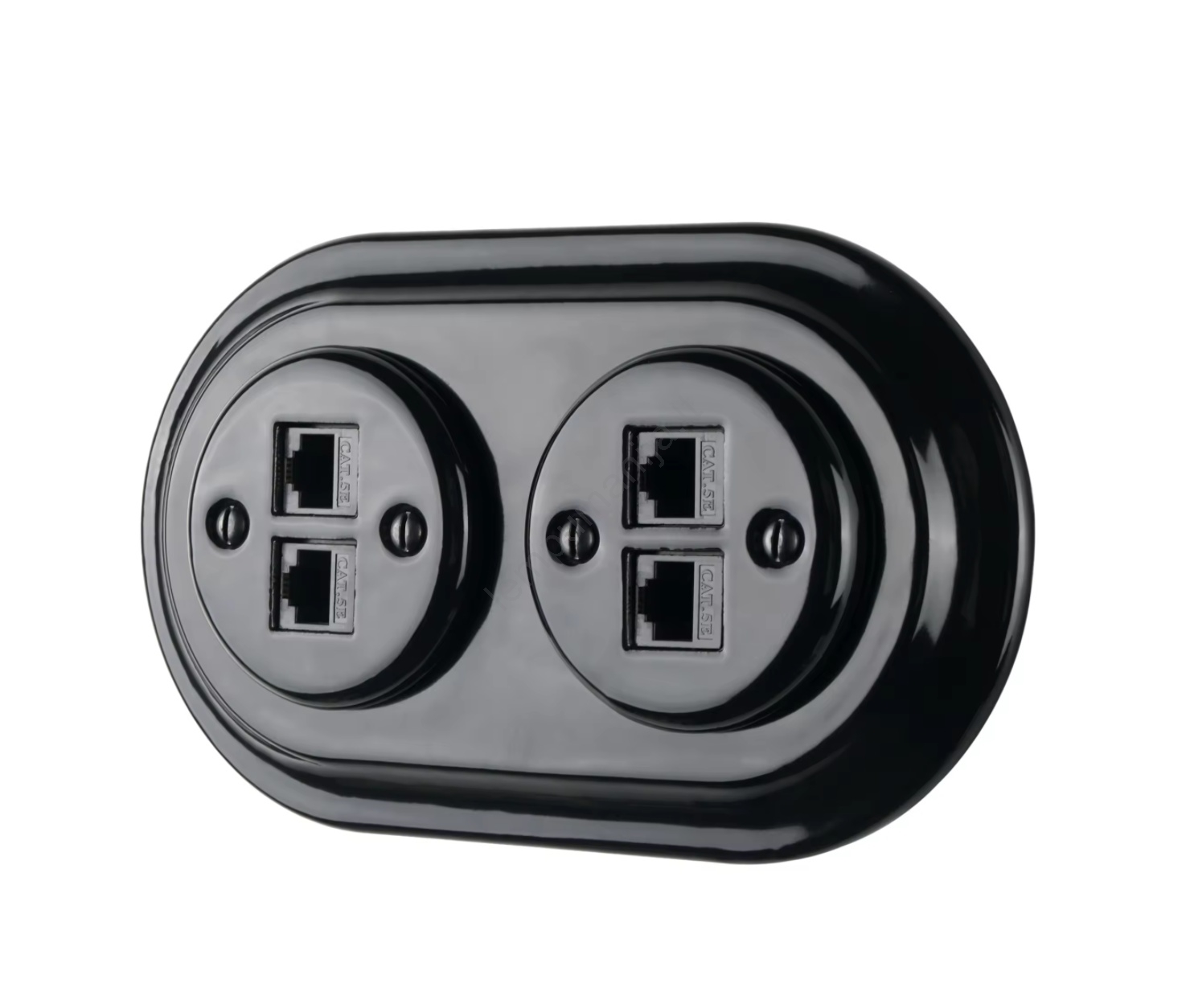 Bohemia-Design - Porcelianinė retro Ethernet rozetė be rėmelio, 2x CAT5E, juoda | Lempumanija