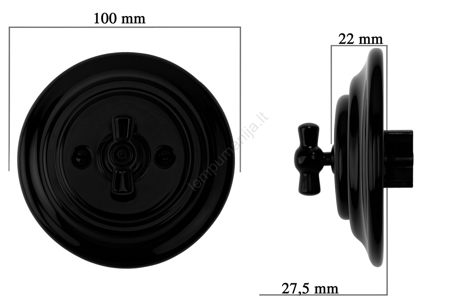 Bohemia-Design - porcelianinis retro sukamas jungiklis su rėmeliu Nr. 1, juodas | Lempumanija