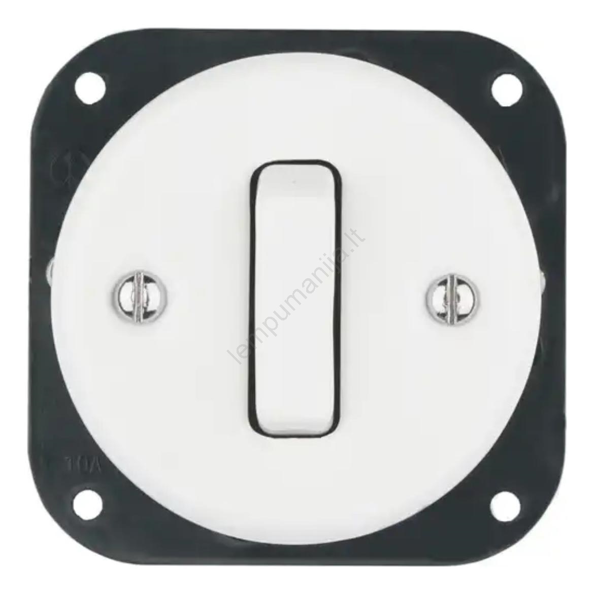 Bohemia-Design - Retro stiliaus porcelianinis vienvietis jungiklis be rėmelio Nr. 1, baltas
