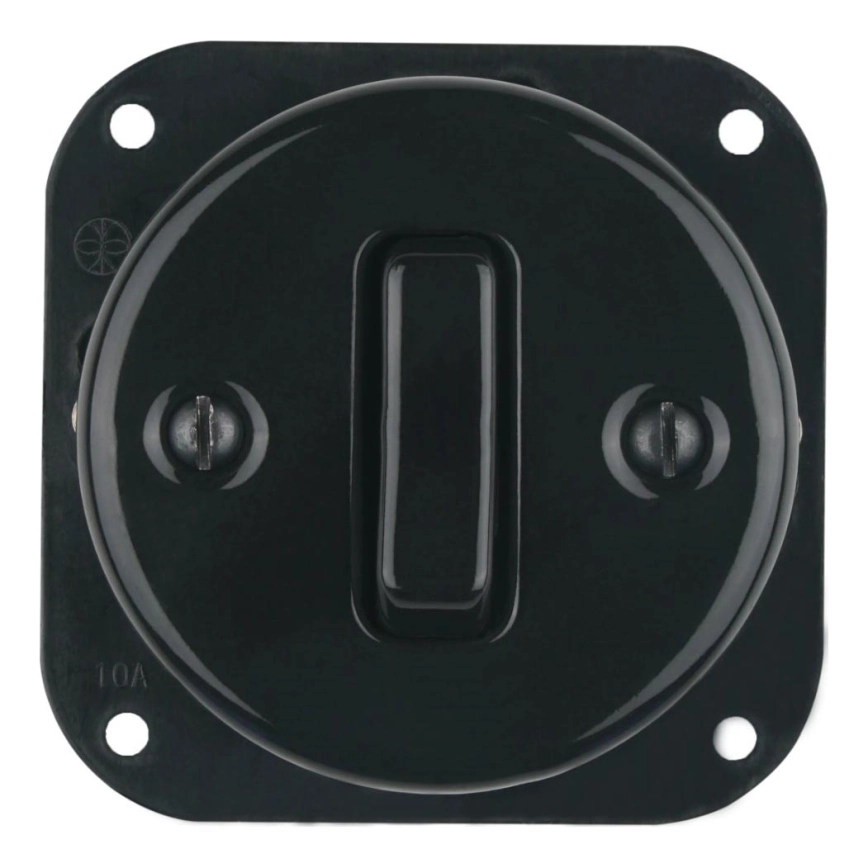 • Bohemia-Design - Retro porcelianinis vieno mygtuko durų skambučio jungiklis be rėmelio, juodas