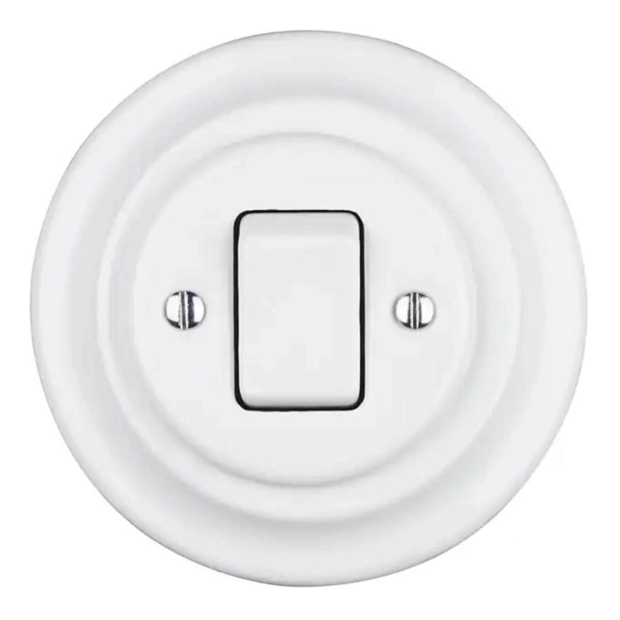 Bohemia-Design - Porcelianinis retro vieno mygtuko jungiklis su rėmeliu nr. 7, baltas