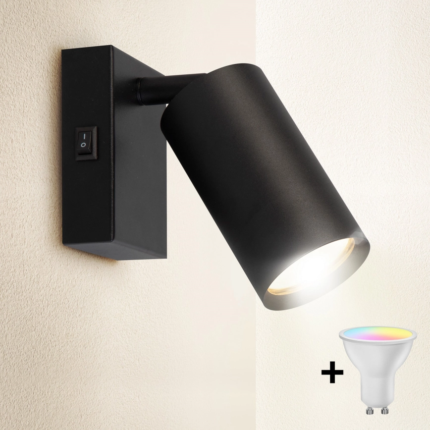 • Brilagi - LED RGBW reguliuojamas sieninis taškinis šviestuvas SELE 1xGU10/6W/230V 3000K juodas + nuotolinio valdymo pultas