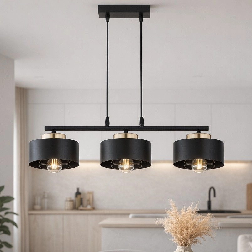 Brilagi - Kabantis šviestuvas ant laido 3xE27/60W/230V juoda/auksinė
