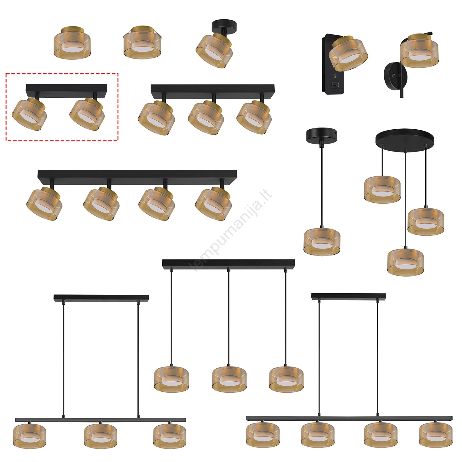 Brilagi - kryptinis šviestuvas AURA LUX 2xGX53/30W/230V juodas/auksinis | Lempumanija