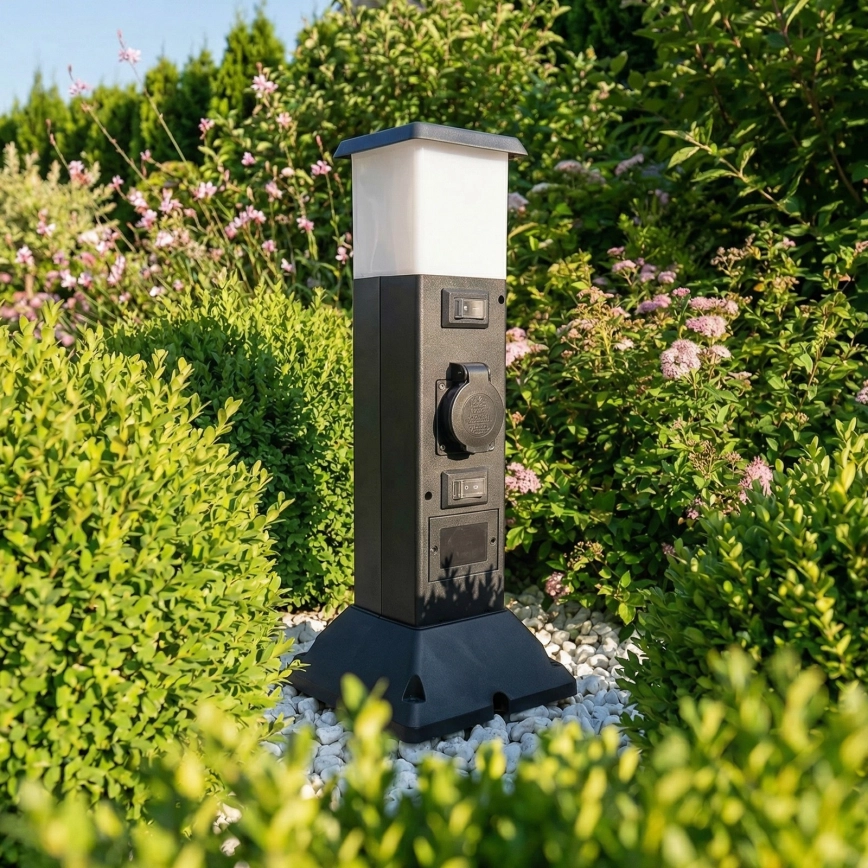 Brilagi - Lauko šviestuvas su 2 SCHUKO lizdais 1xE14/15W/230V IP44 juodas