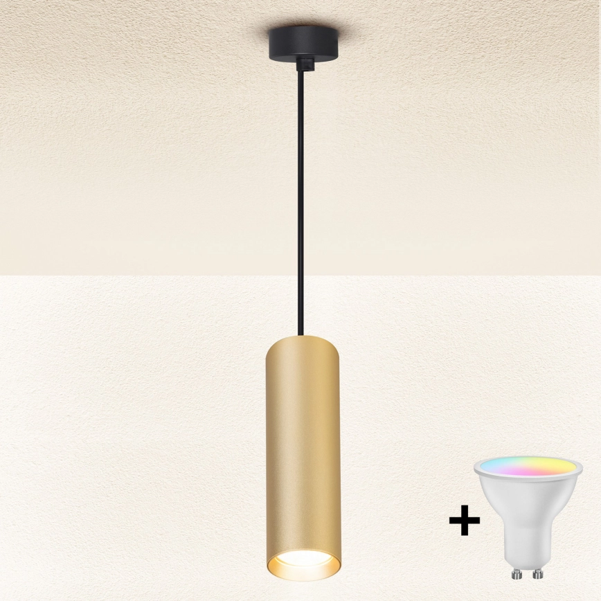 • Brilagi - LED RGBW dimeriuojamas kabantis šviestuvas ant laido SELE 1xGU10/6W/230V 3000K juoda/auksinė + nuotolinis valdymas