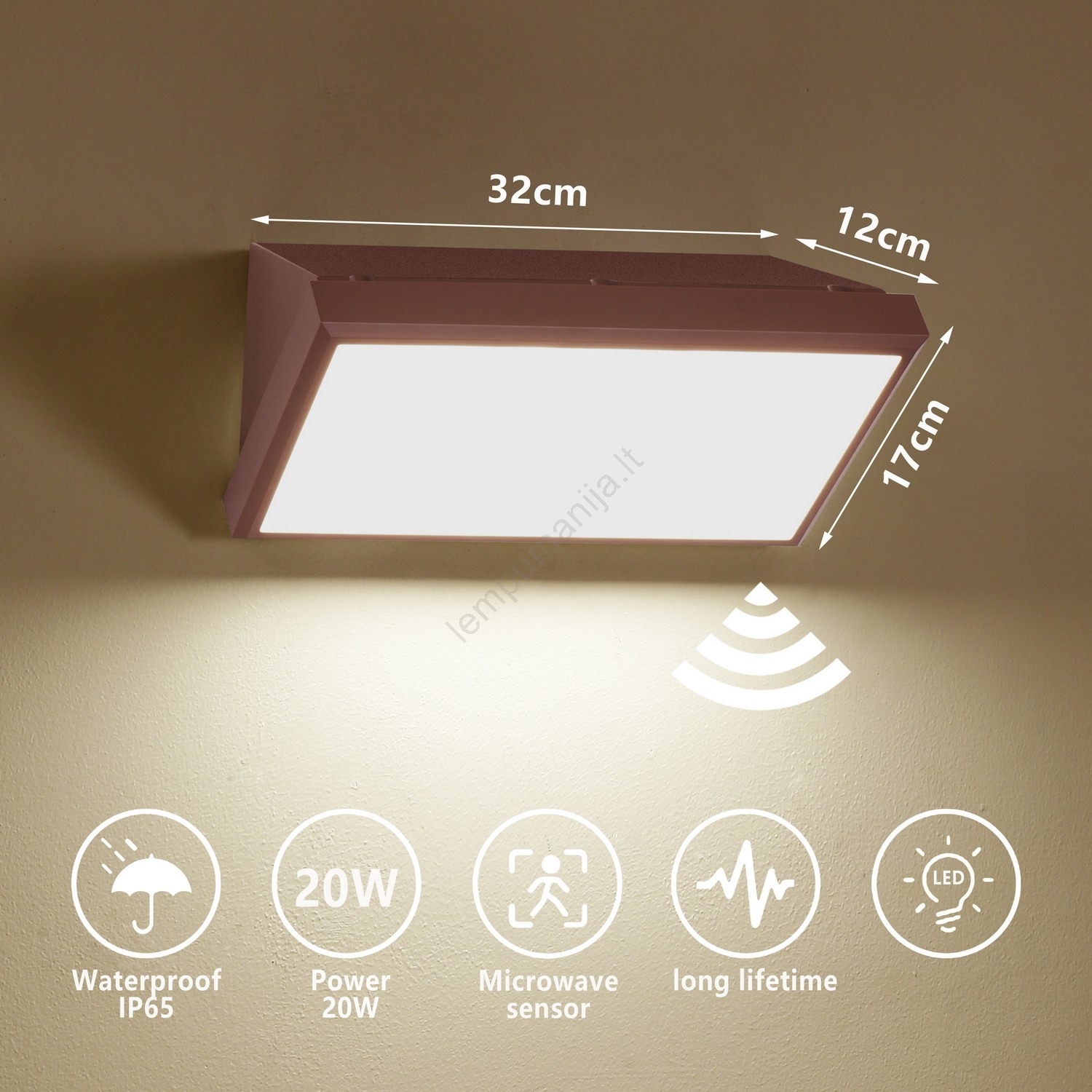 Brilagi-LED lauko sieninis šviestuvas su jutikliu TRIANGLE LED/20W/230V rudos spalvos IP65 | Lempuma