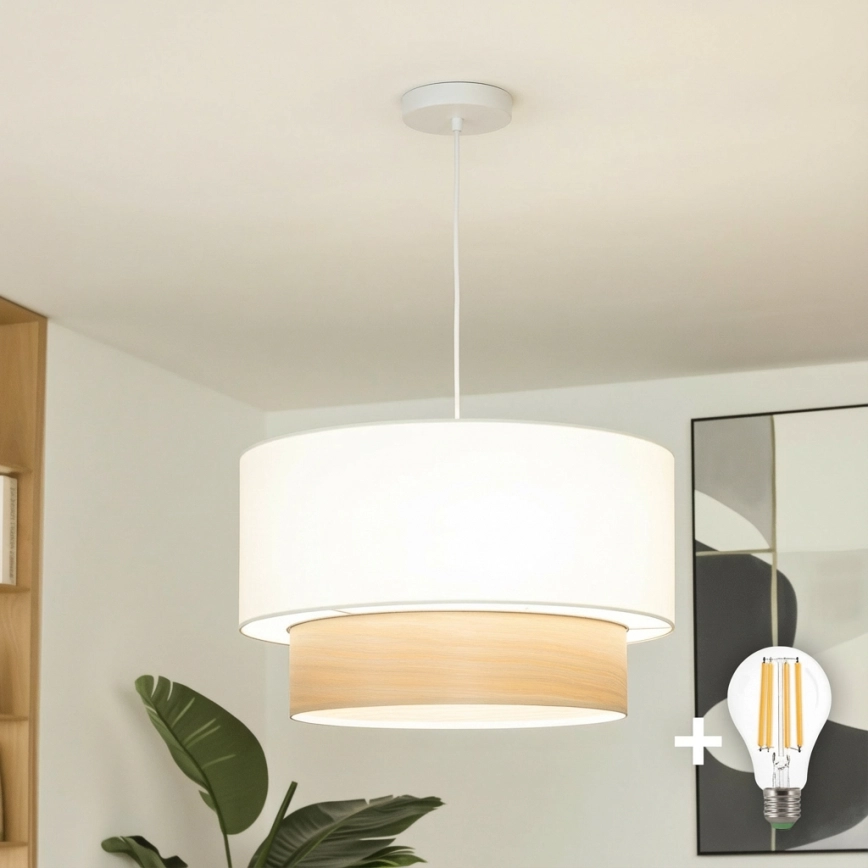 Brilagi - LED liustra ant laido CERIA 1xE27/40W/230V skersmuo 50 cm balta/smėlio | Lempumanija