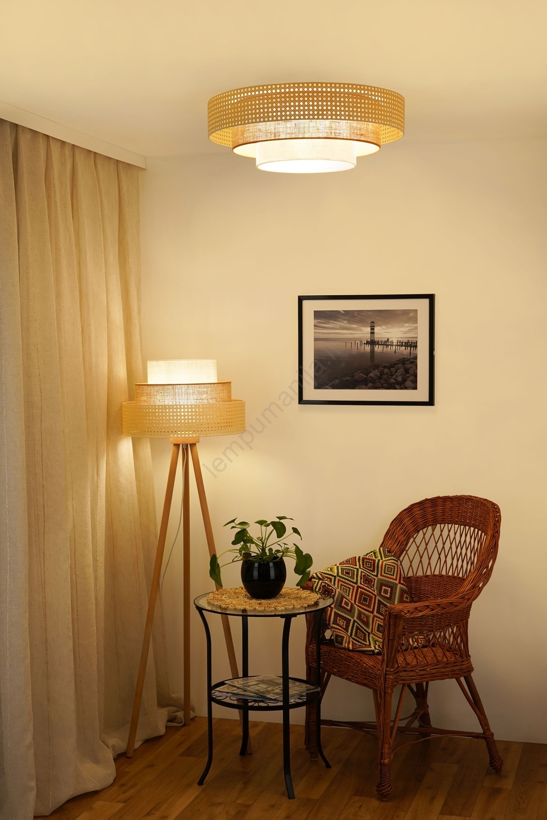Brilagi - LED lubinis šviestuvas CEDAR LUNETA LED/26W/230V rotangas/ruda/kreminė | Lempumanija