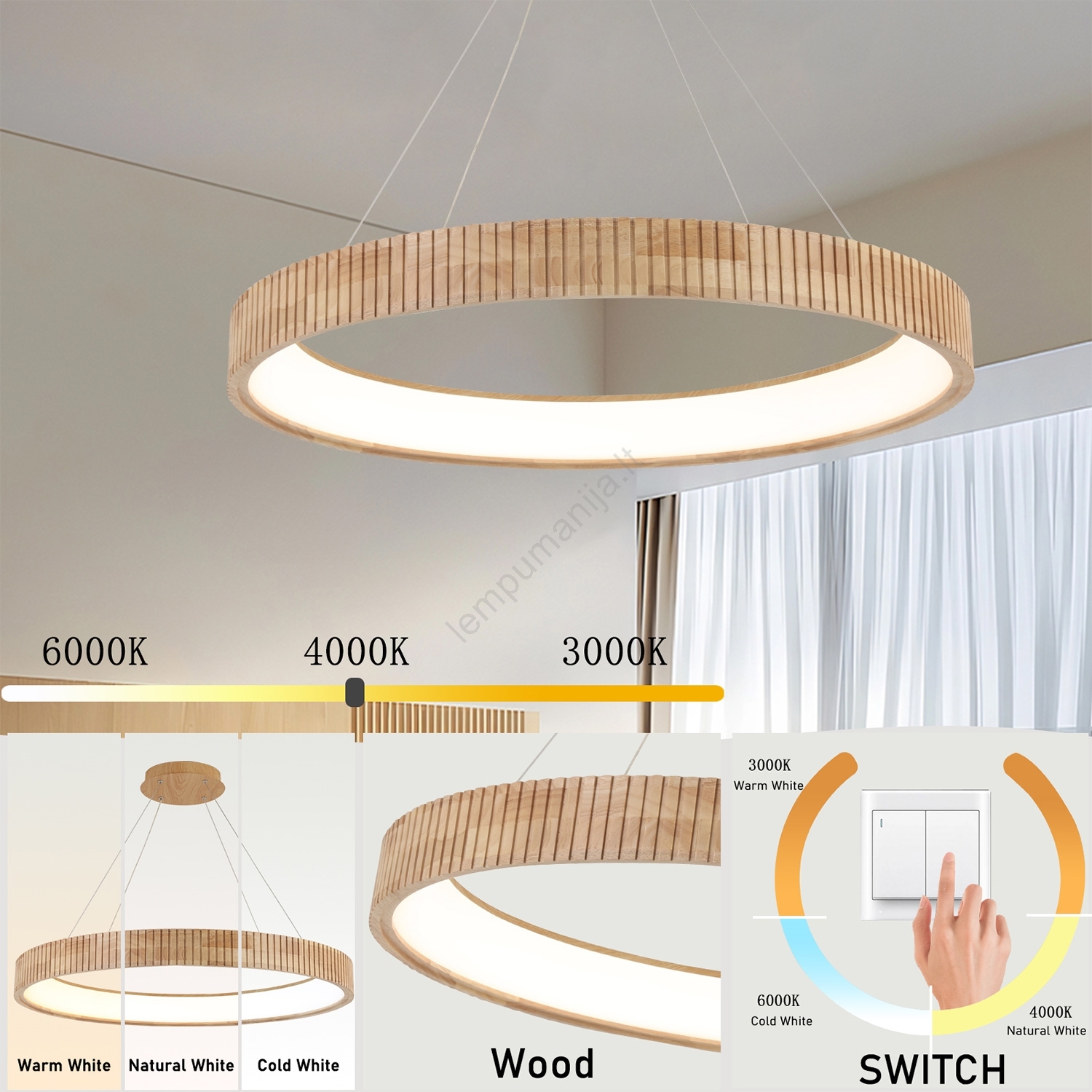 Brilagi - Pakabinamas LED šviestuvas ant laido FALCON WOOD MODERN LED/60W/230V 3000/4000/6000K, skersmuo 80 cm, mediena