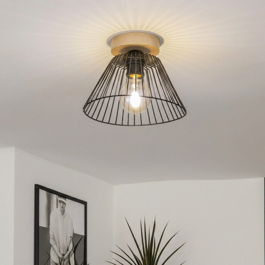 Brilagi - LED paviršinė liustra CERIA WIRE 1xE27/40W/230V skersmuo 30 cm juoda/ąžuolas