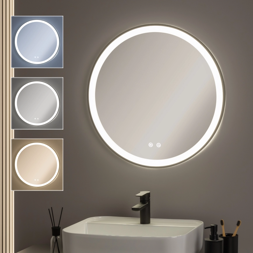 • Brilagi - ALU PRO LED dimeriuojamas šildomas vonios veidrodis su apšvietimu LED/18W/230V skersmuo 60 cm 3000/4000/6500K IP44 blizgus chromas CRI 90