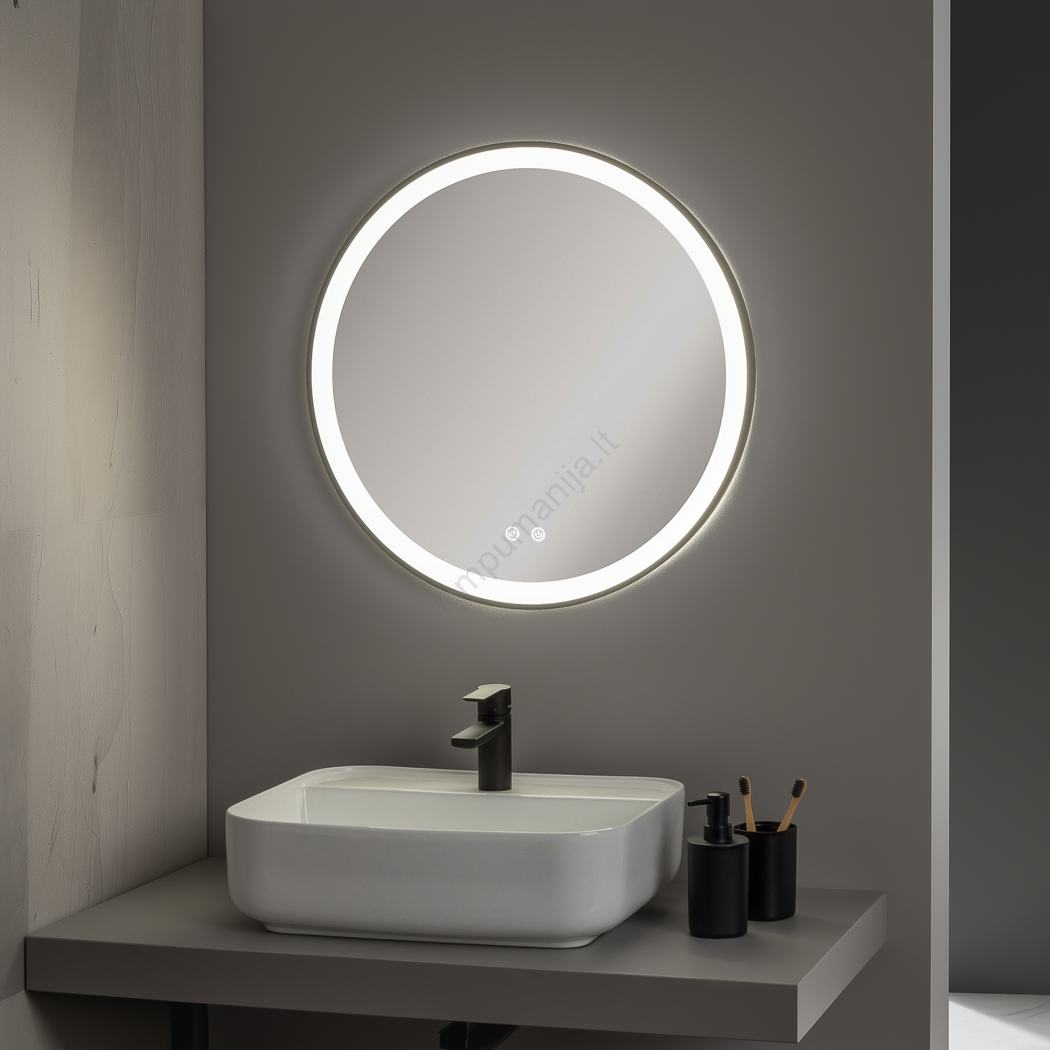 • Brilagi - dimeriuojamas vonios šildomas veidrodis su integruotu apšvietimu ALU PRO LED/18W/230V skersmuo 60 cm 3000/4000/6500K IP44 juodas CRI 90