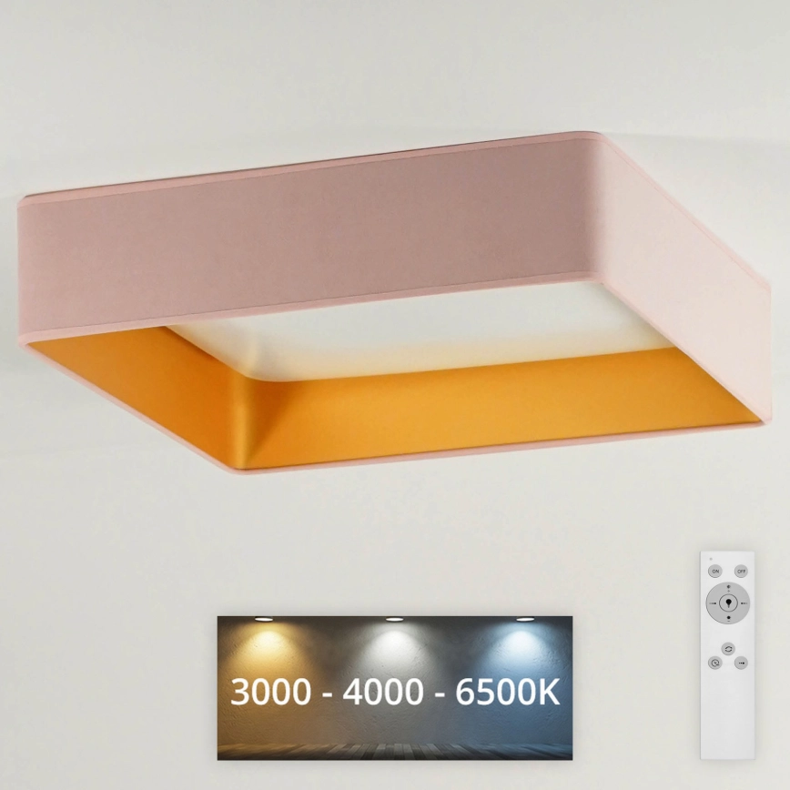 • Brilagi - LED lubinis šviestuvas su reguliuojamu ryškumu VELVET SQUARE LED/24W/230V 43x43 cm 3000/4000/6500K + nuotolinis valdymas rožinis
