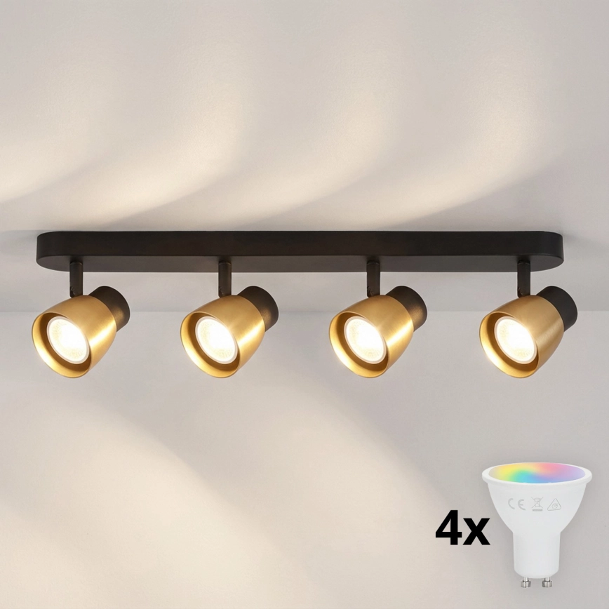 Brilagi - LED RGBW dimeriuojamas taškinis šviestuvas NUGGET 4xGU10/6W/230V 3000K juoda/auksinė + nuotolinio valdymo pultas