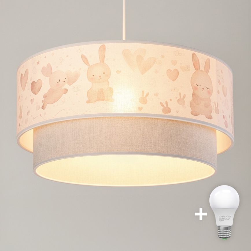 • Brilagi - LED vaikiškas pakabinamas šviestuvas ant laido BOBO 1xE27/10W/230V skersmuo 40 cm kreminė/rožinė/kiškučiai