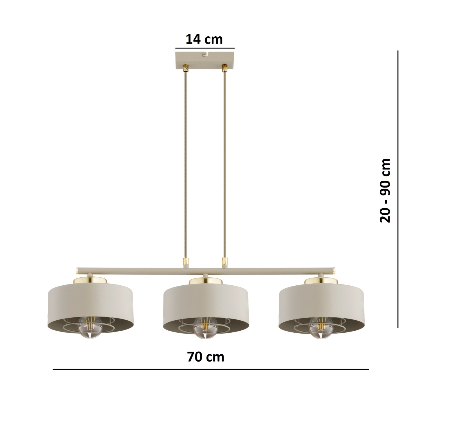 • Brilagi - Pakabinamas šviestuvas ant laido 3xE27/60W/230V smėlinė/auksinė