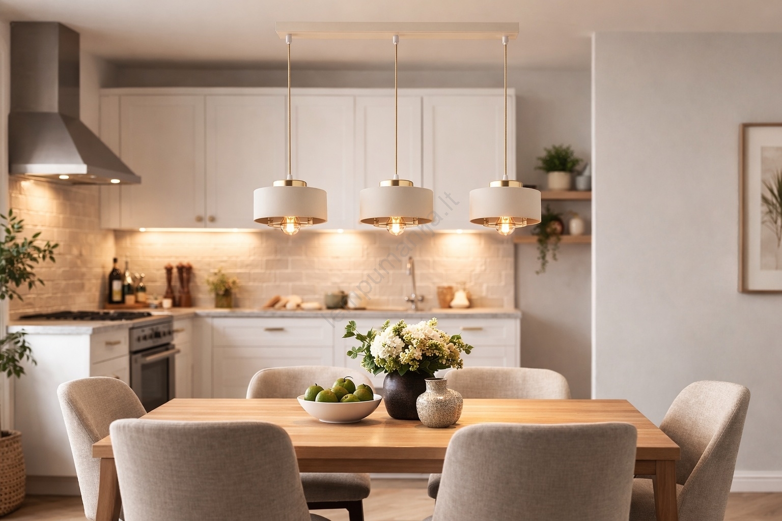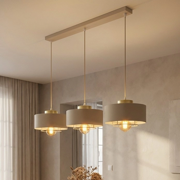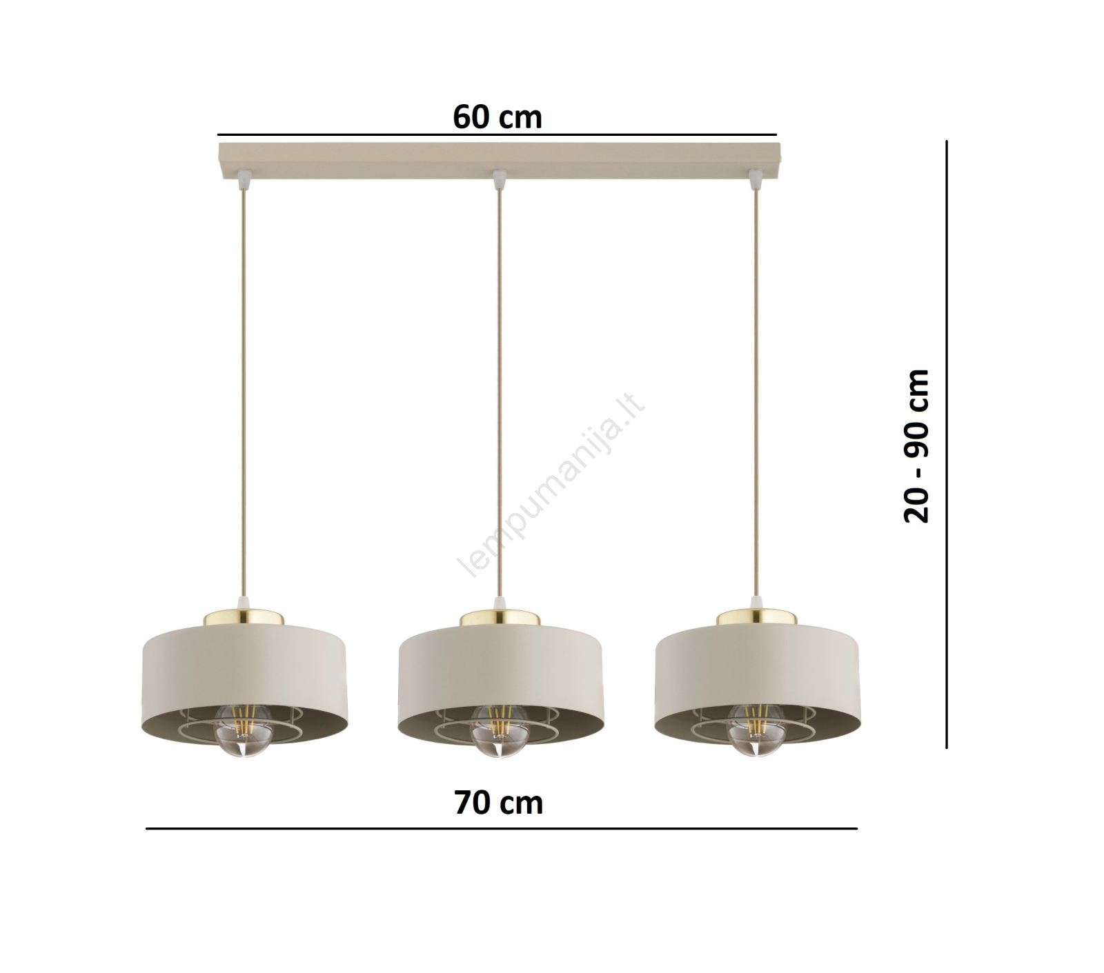 • Brilagi – pakabinamas šviestuvas ant laido, 3xE27/60W/230V, smėlio spalvos/auksinis