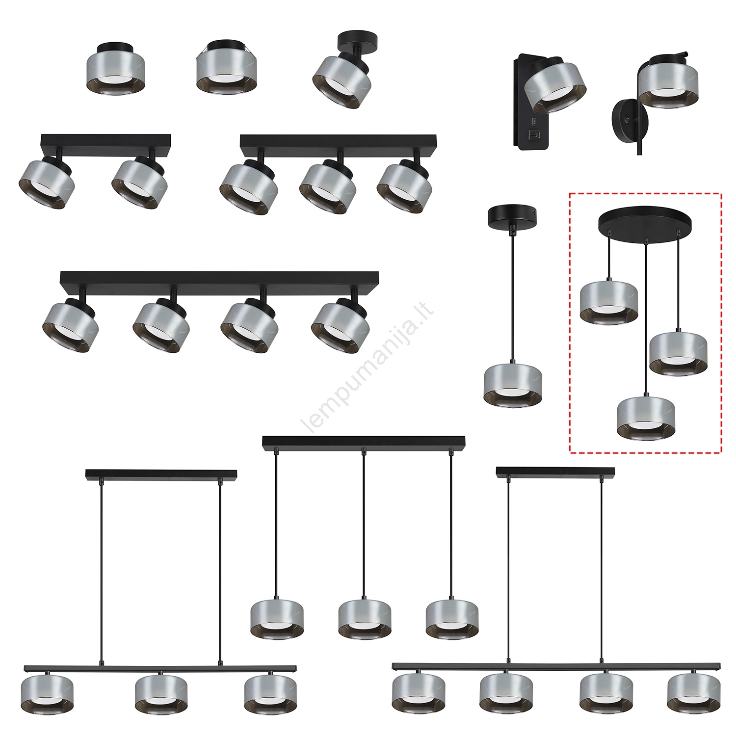 • Brilagi - LED Pakabinamas šviestuvas ant laido AURA LUX 3xGX53/30W/230V juoda/dūminė