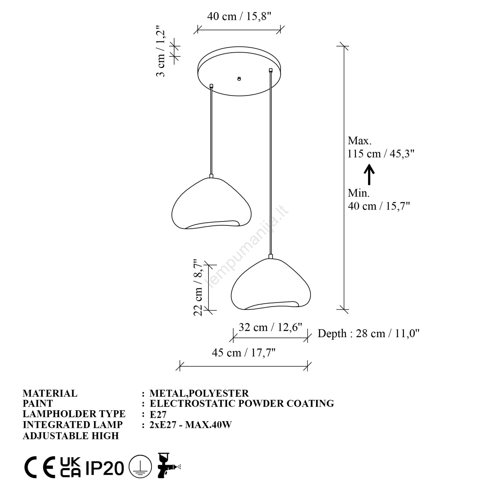 • Brilagi - Kabantis šviestuvas ant laido WABI SABI 2xE27/40W/230V skersm. 45 cm balta