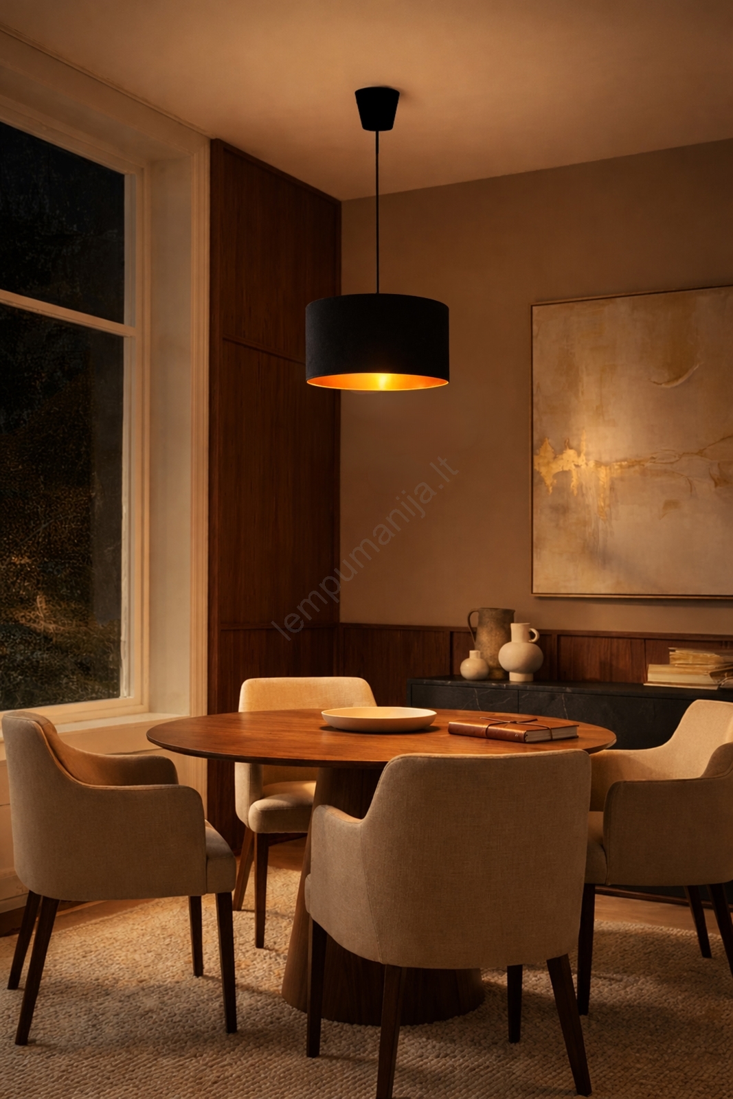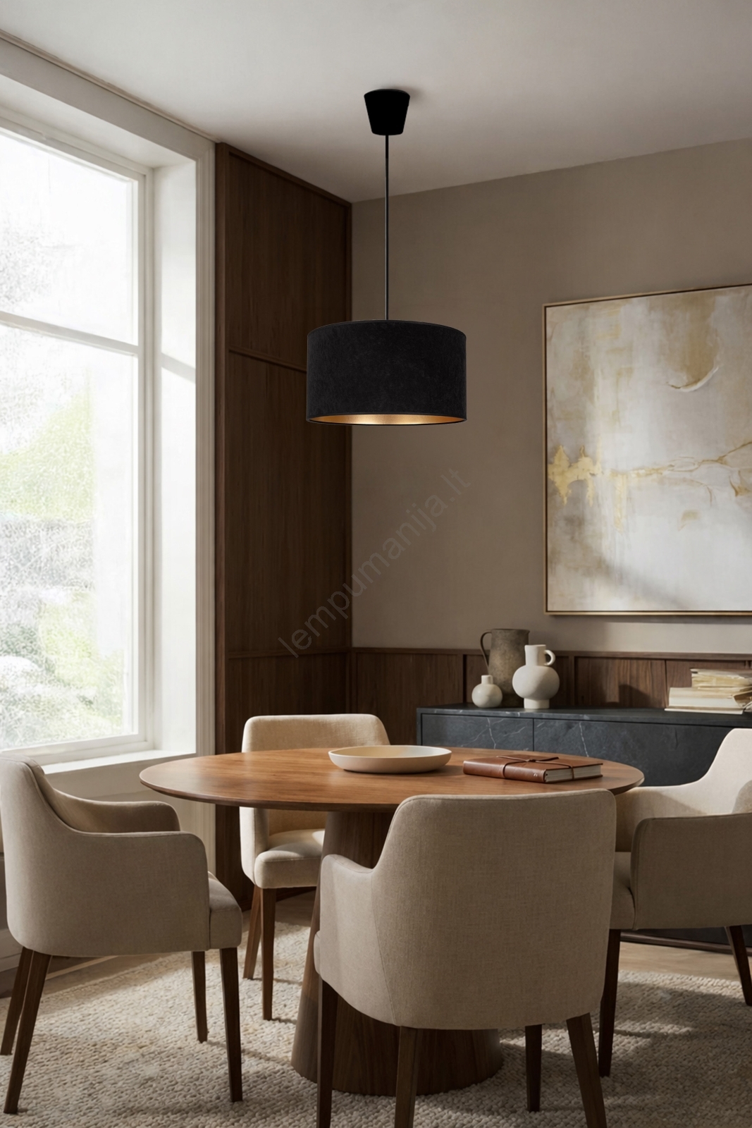 Brilagi - Pakabinamas šviestuvas VELVET su laidu 1xE27/60W/230V, skersmuo 40 cm, juodas/auksinis pasižymi gražiu ir funkcionaliu dizainu.  Šviestuvui tinka lemputė su E27 dangteliu. Čia galite įsigyti kitų lempučių palankiomis kainomis. Įdomus jūsų namų priedas.