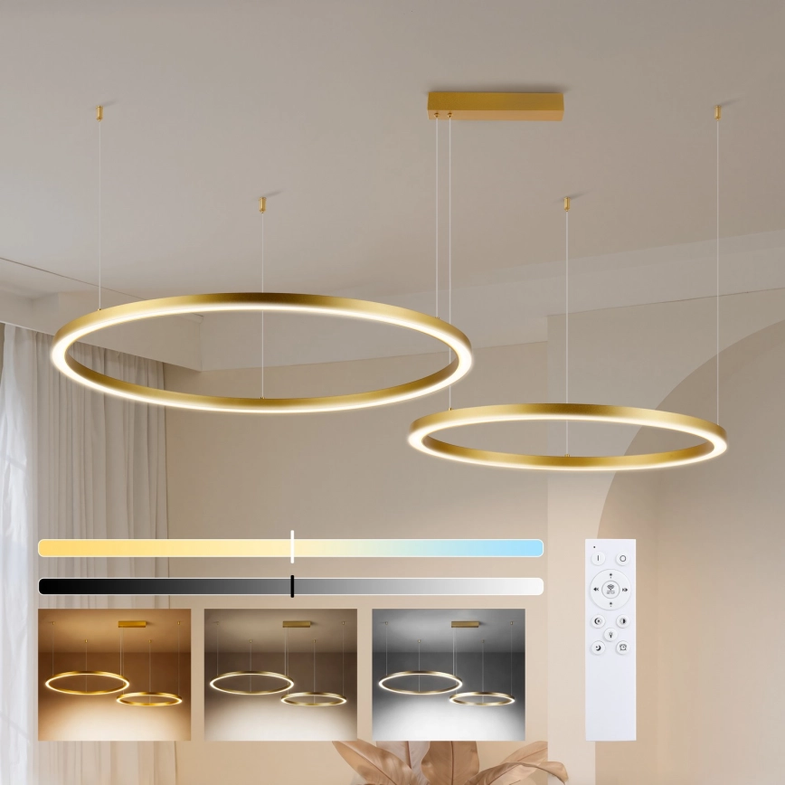 Brilagi - reguliuojama LED liustra ant troselio PORTOFINO LED/98W/230V 3000-6000K auksinė + su nuotoliniu pultu