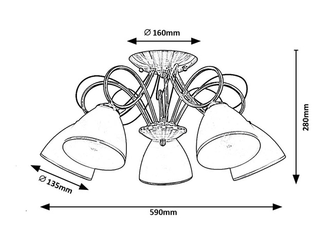 Brilagi - Prie lubų montuojamas šviestuvas FRED 5xE27/60W/230V, skersmuo 59 cm, bronzinis