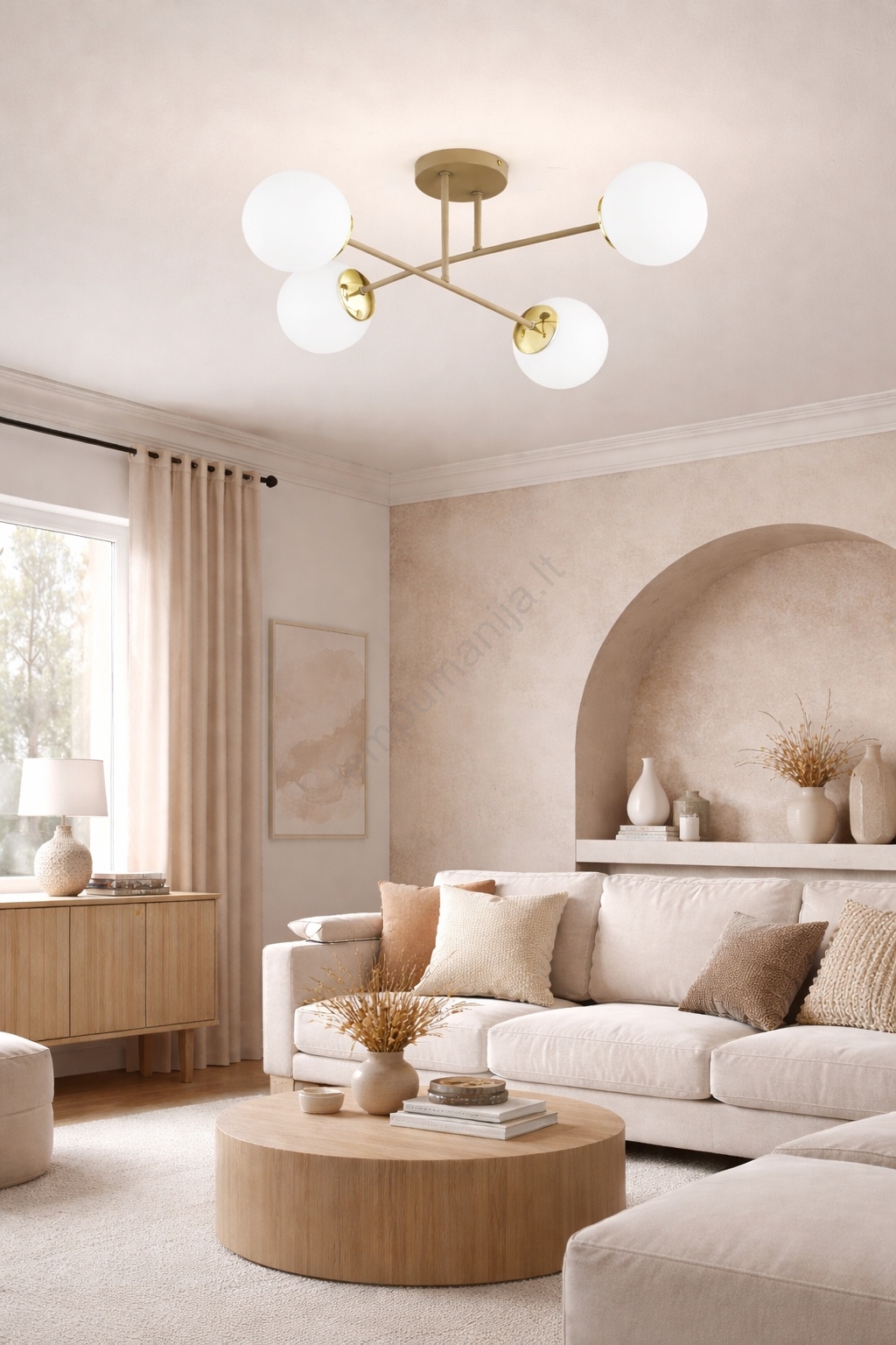 Brilagi - Prigludęs lubų šviestuvas 4xE27/60W/230V smėlinis/auksinis pasižymi gražiu ir funkcionaliu dizainu.  Šviestuvui tinka lemputė su E27 dangteliu. Čia galite įsigyti kitų lempučių palankiomis kainomis. Įdomus jūsų namų priedas.