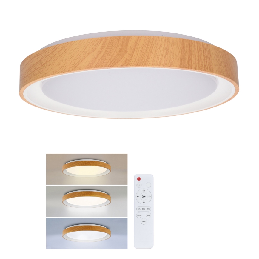 • Brilagi - Dimeriuojamas LED lubų šviestuvas FLOCO LED/48W/230V, skersmuo 40 cm, medžio dekoras/balta + nuotolinis valdymas
