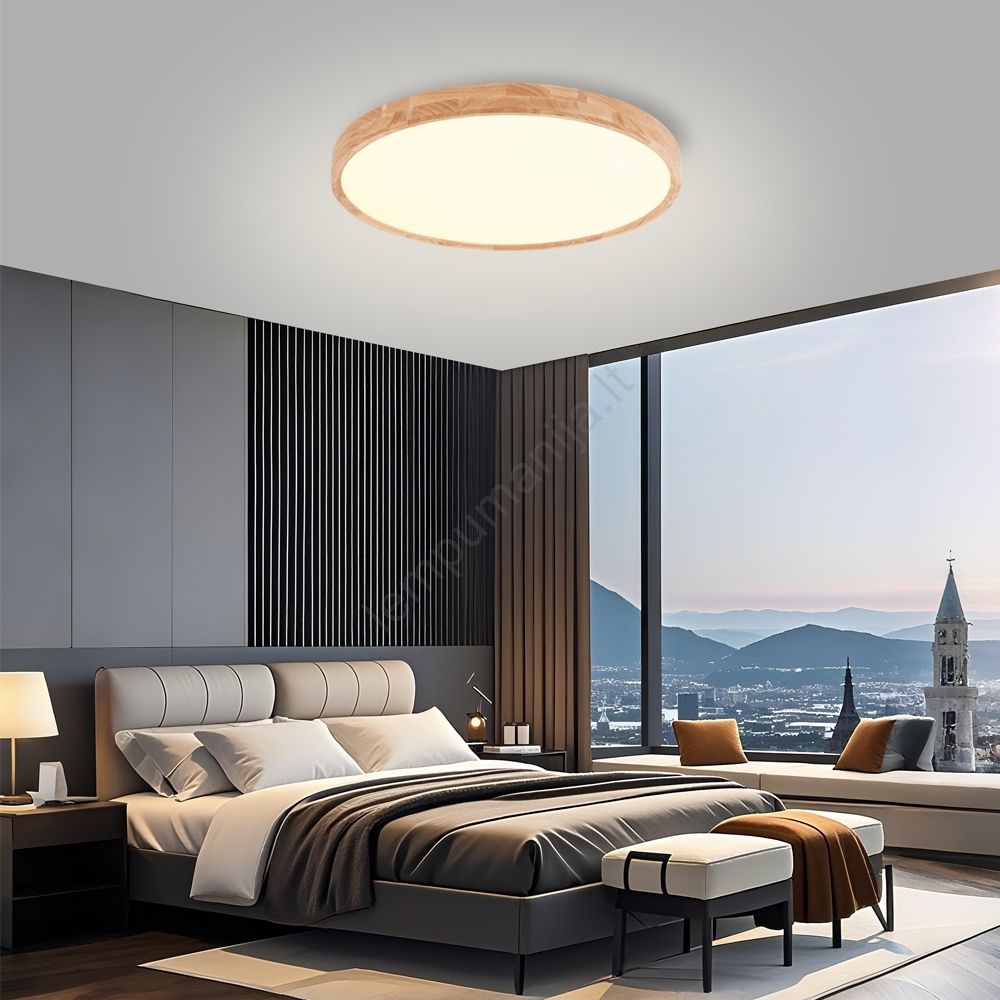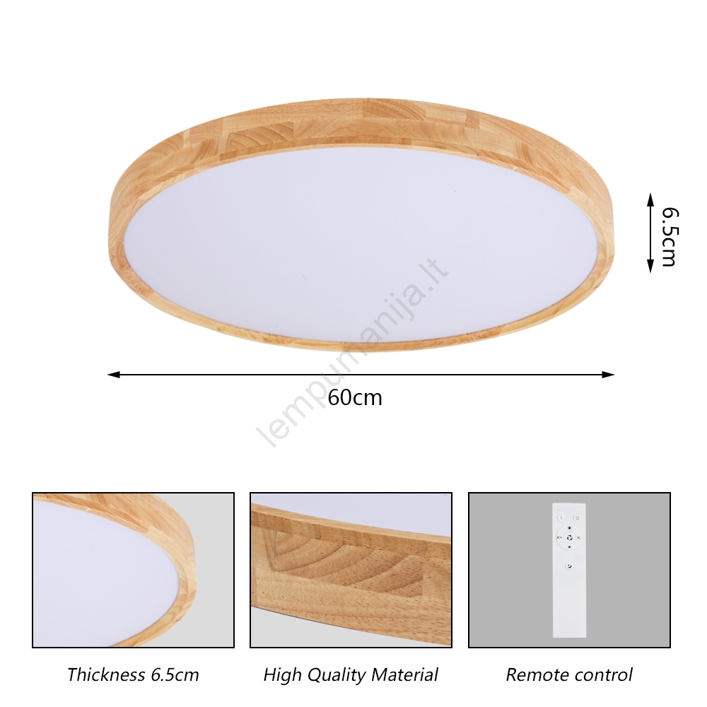• Brilagi - Dimeriuojamas LED lubų šviestuvas WOODROUND LED/40W/230V 3000-6000K skersmuo 60 cm mediena CRI 90 + nuotolinis valdymas