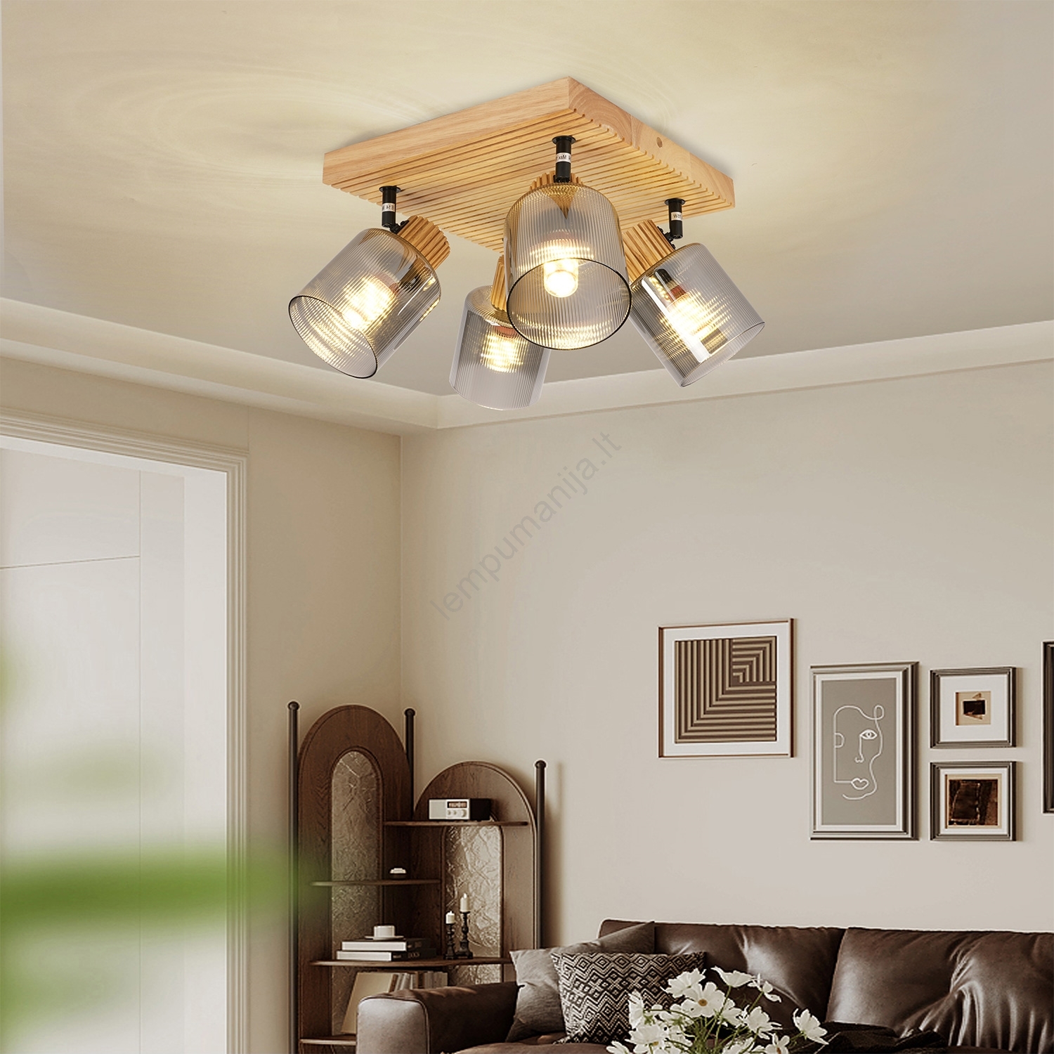 Brilagi - Taškinis šviestuvas HYGGE 4xE14/15W/230V medinis/dūminis