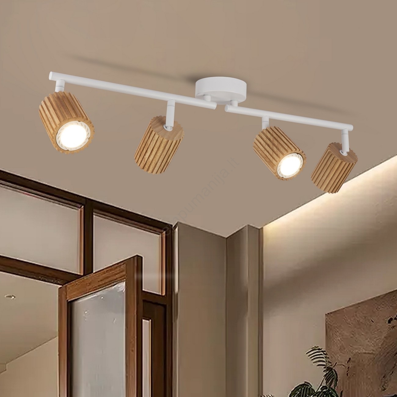 • Brilagi - Taškinis šviestuvas MODERN WOOD 4xGU10/8W/230V medis/balta