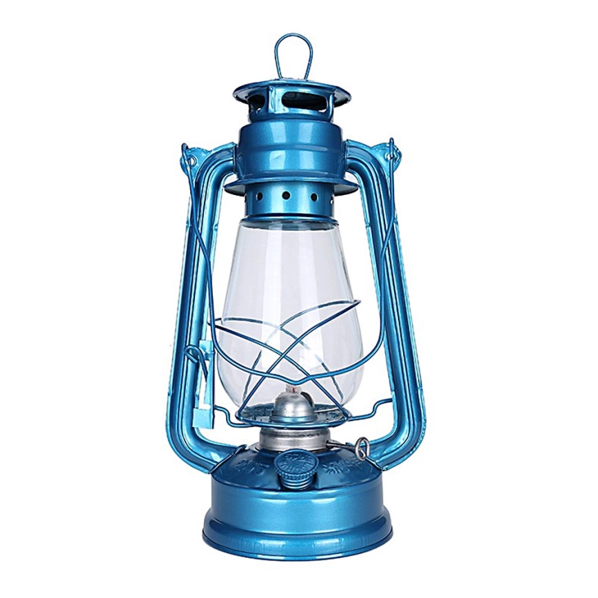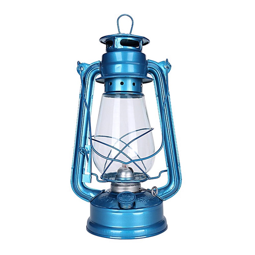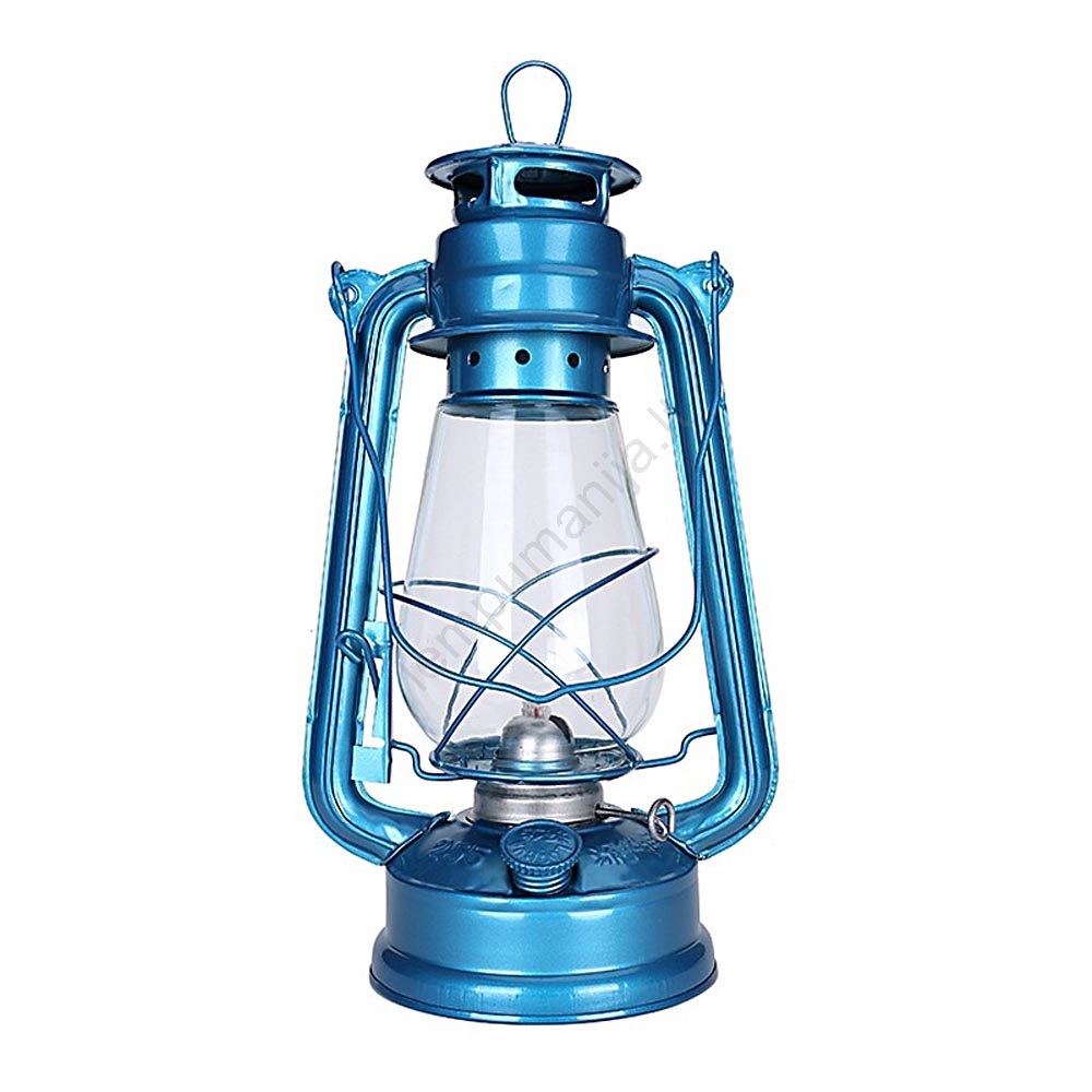 • Stilinga skardinė petrolejinė lempa su stikline kolba.