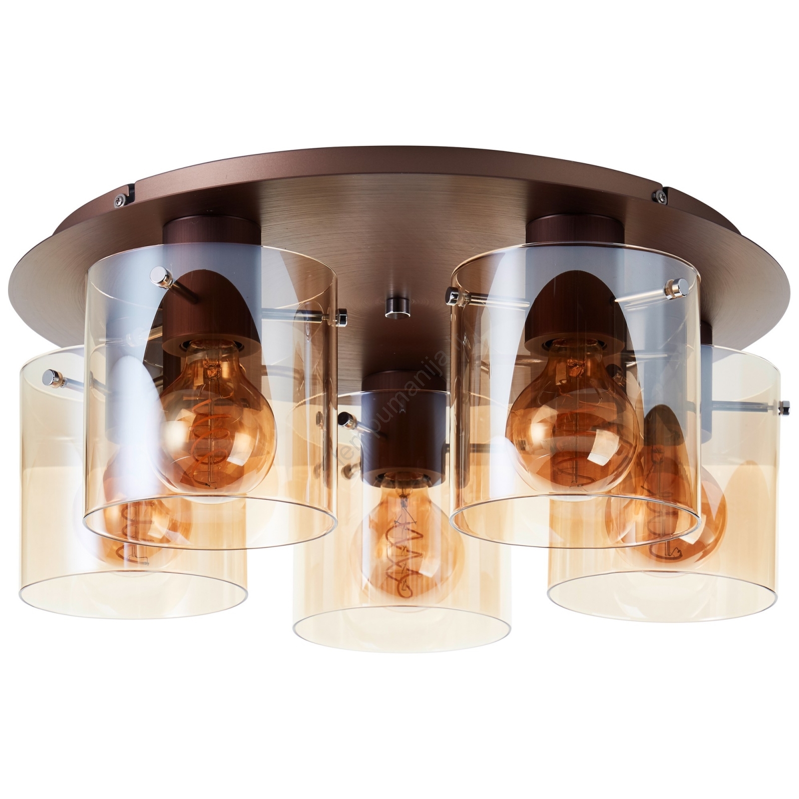 Brilliant - Lubinis šviestuvas PETJE, 5 x E27, max. 40 W, 230 V, skersmuo 52 cm, rudas/dūminis | Lem