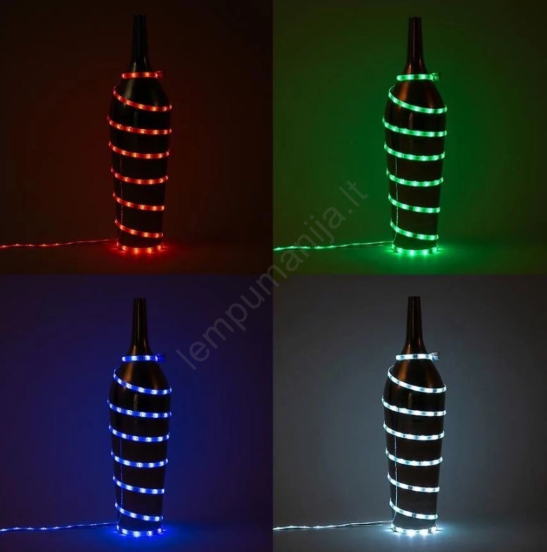 • Komplekte: 5 m LED juosta, nuotolinio valdymo pultas, transformatorius, 1,5 m laidas ir tvirtinimo spaustukas.