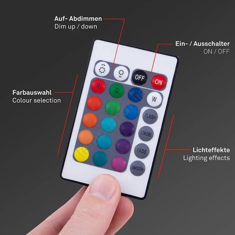 Nuotolinio valdymo pultelio išvaizda ir funkcijos gali skirtis priklausomai nuo šviestuvo partijos, nes gamintojas nuolat stengiasi jį atnaujinti.