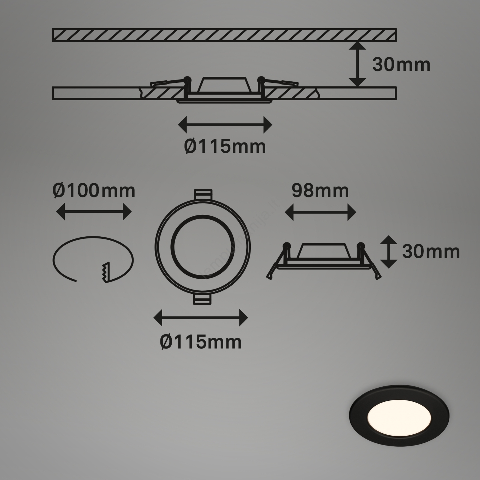 Briloner 7049015 - LED dimeriuojamas įleidžiamas šviestuvas vonios kambariui LED/6W/230V 3000K IP44 juodas