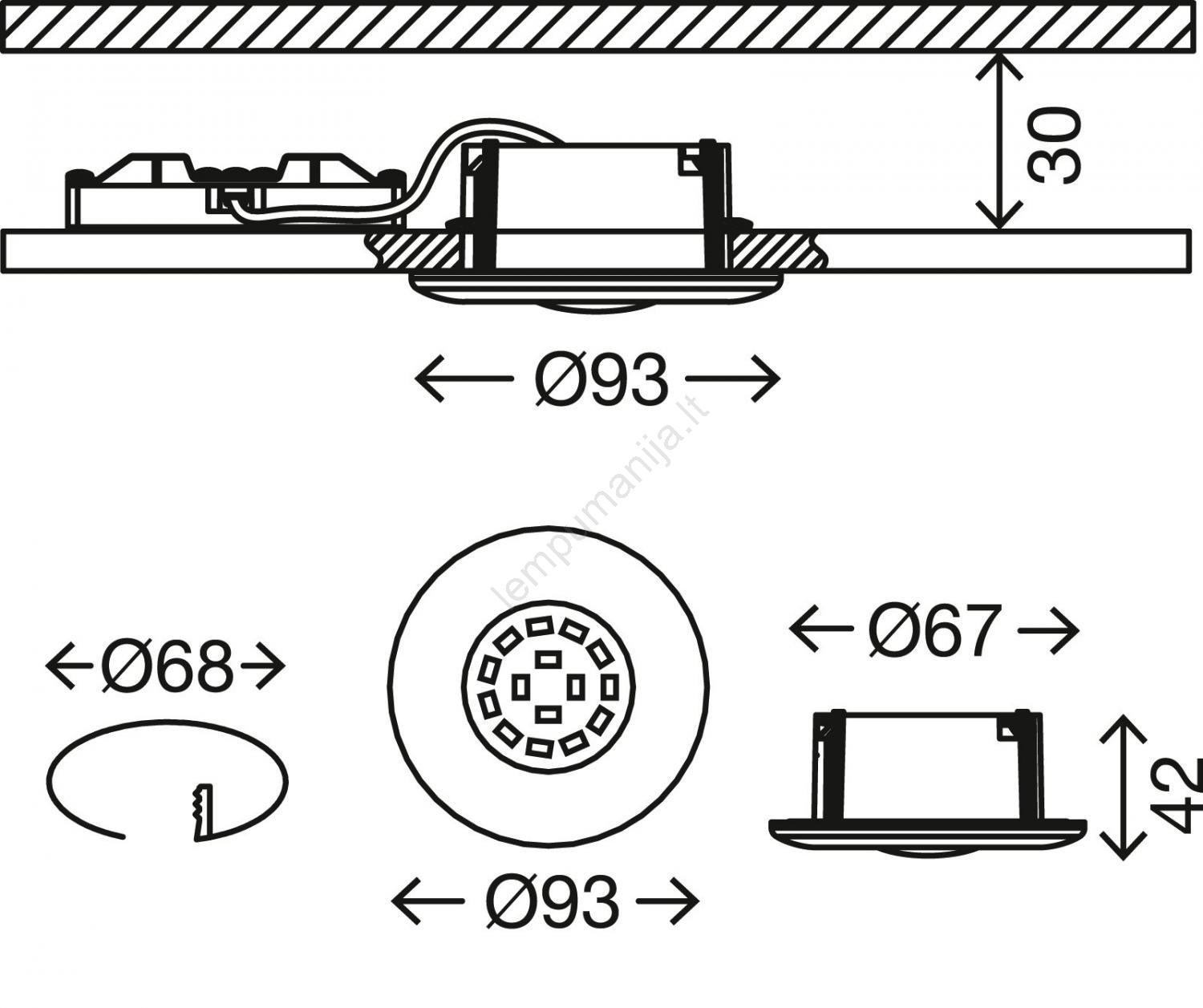 • Briloner 7227-012 - LED įleidžiamas lubinis vonios šviestuvas LED/5W/230V IP65 matinis chromas
