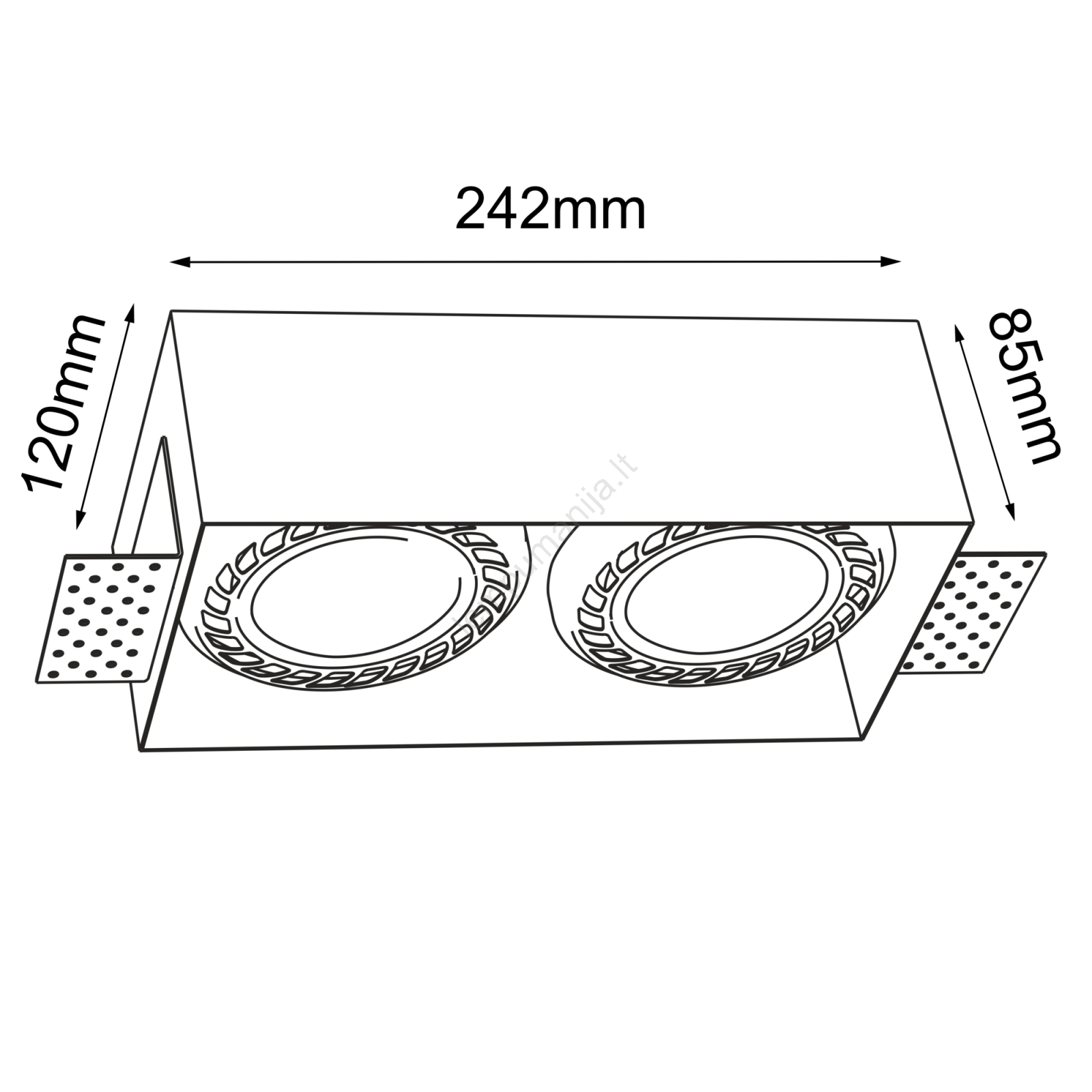 Brosline - Įleidžiamas šviestuvas 2xGU10/18W/230V juodas pasižymi gražiu ir funkcionaliu dizainu.  Šviestuvui tinka lemputė su GU10 dangteliu. Čia galite įsigyti kitų lempučių palankiomis kainomis. Įdomus jūsų namų priedas.
