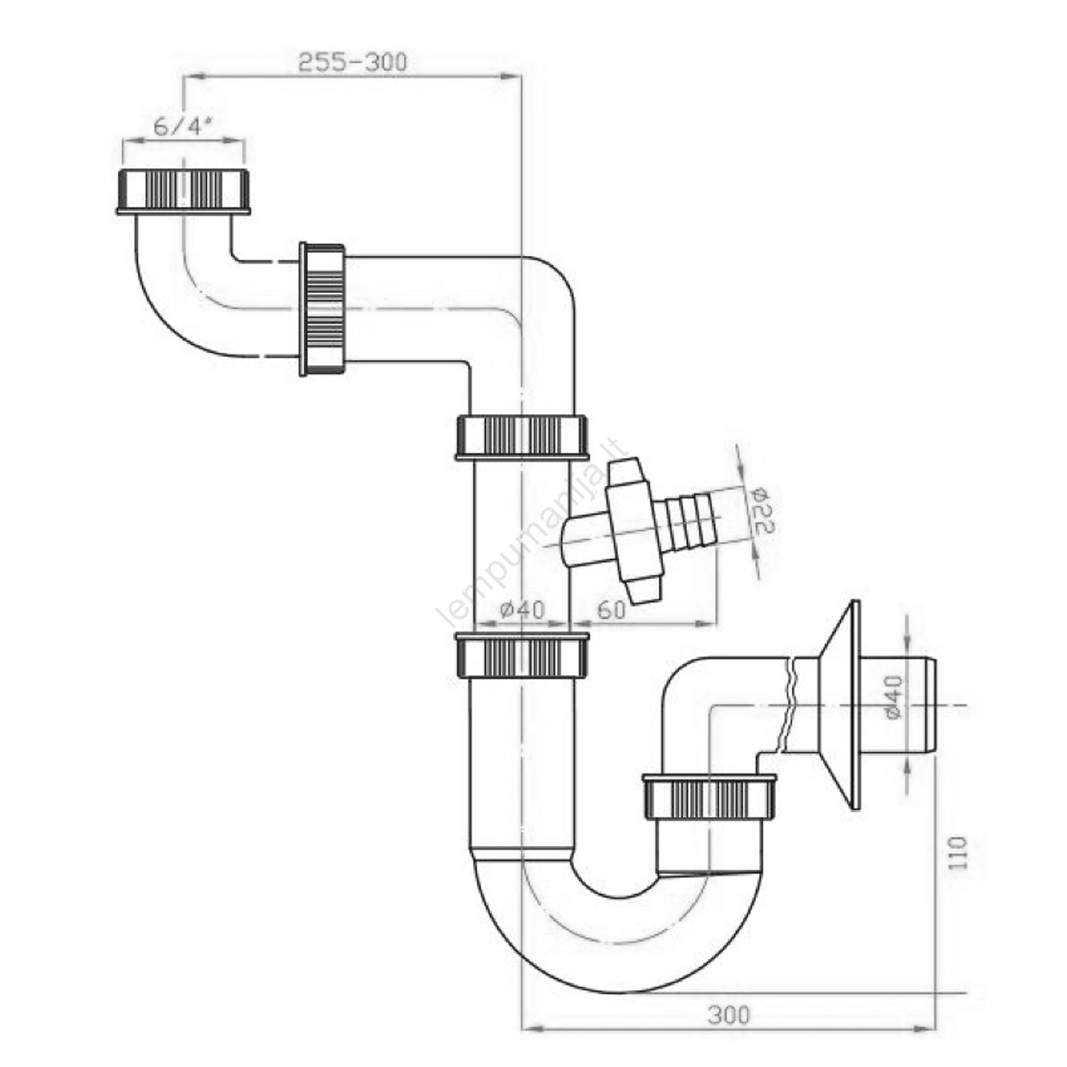 • Turi DN40 jungtį, skirtą prijungti prie nuotekų vamzdyno.