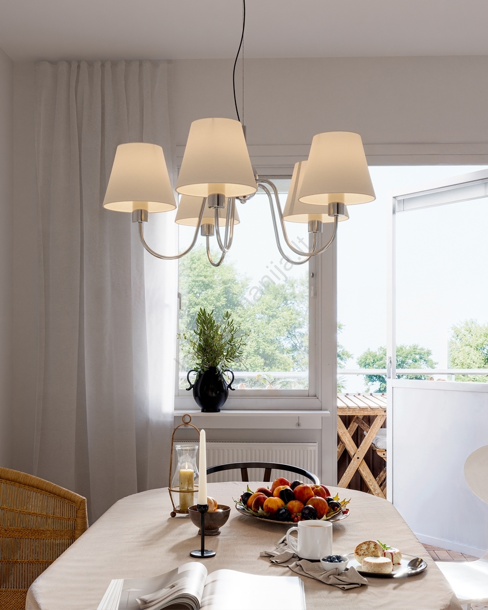 ByRydens - Pakabinamas šviestuvas ant laido LYNF 5xE14/8W/230V blizgus chromas/balta pasižymi gražiu ir funkcionaliu dizainu.  Šviestuvui tinka lemputė su E14 dangteliu. Čia galite įsigyti kitų lempučių palankiomis kainomis. Įdomus jūsų namų priedas.
