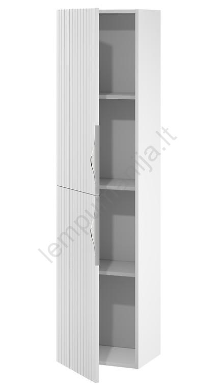 • Spintelės fasadas, korpusas ir vidinės lentynos pagaminti iš 16 mm storio medžio drožlių plokštės ir padengti baltu laku.