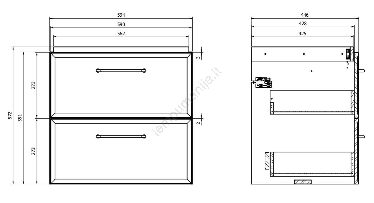 • Spintelė turi dvi erdvias stalčius su sulėtintu uždarymu.