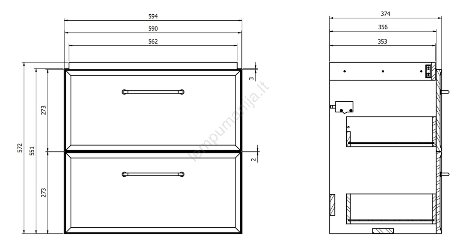 • Spintelė turi dvi erdvias stalčius su lėtu uždarymo mechanizmu - soft-close.