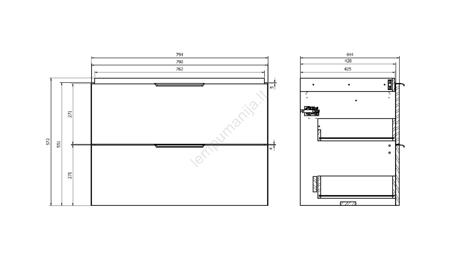 • Spintelė turi dvi erdvias stalčius su lėto uždarymo sistema.