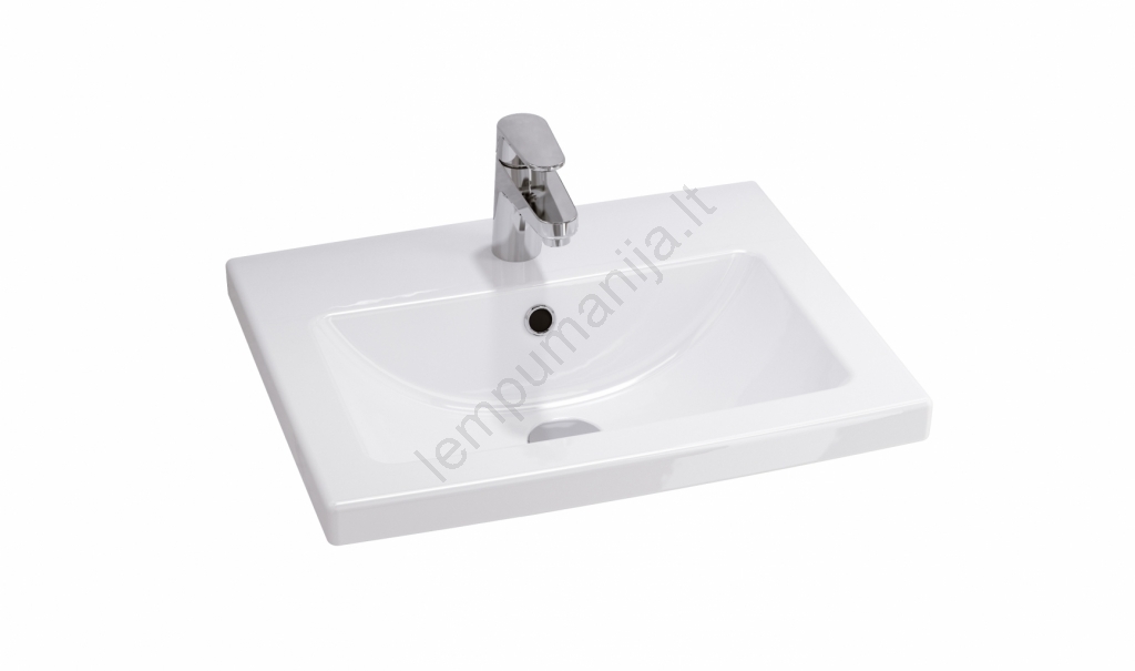 • Keramikinis praustuvas turi klasikinę stačiakampę formą su angomis maišytuvui ir perpylimo sistemai.