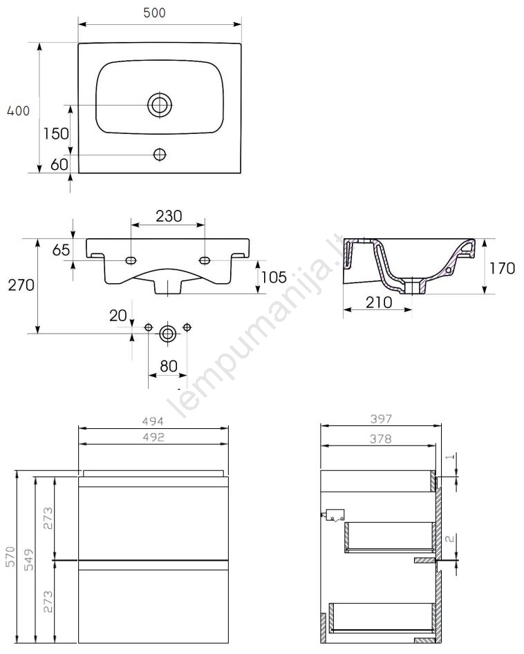 • Ši vonios kambario pakabinama spintelė tiekiama su keraminiu praustuvu.
